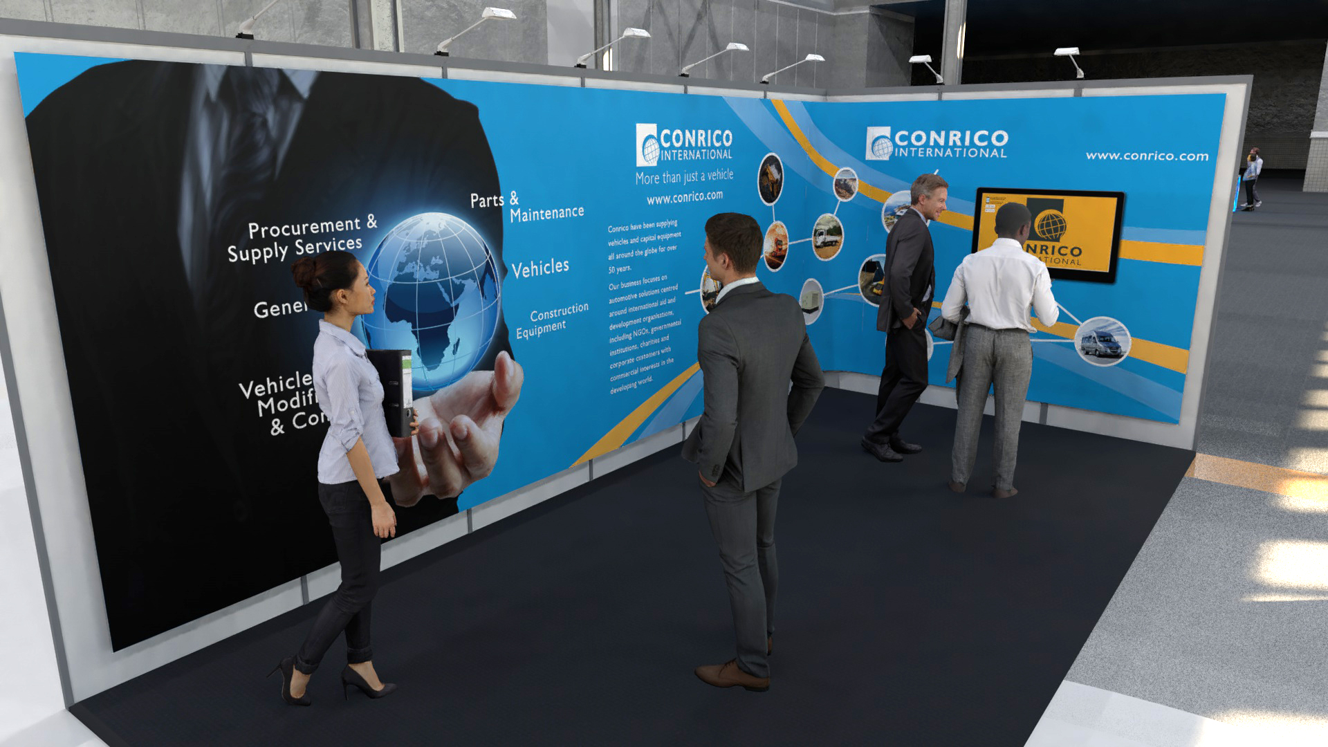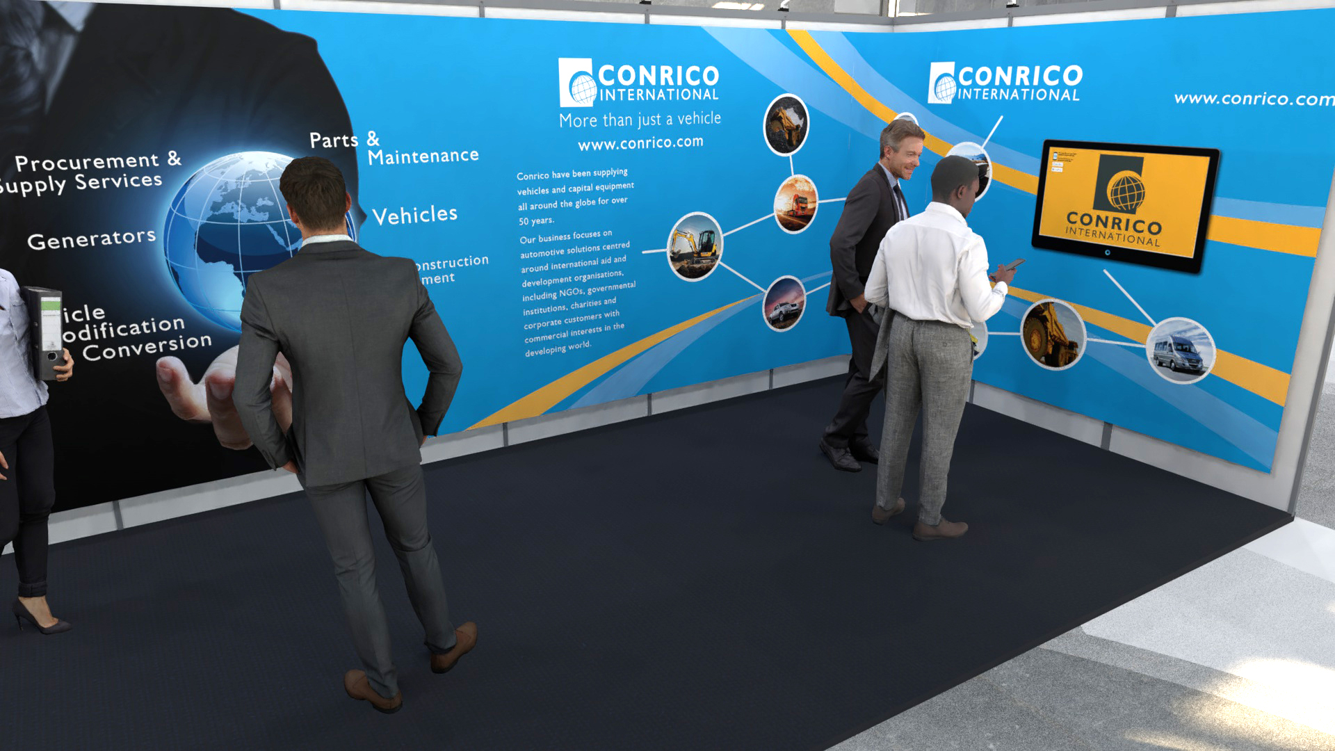 Conrico approached us to elevate their presence at the DIHAD Conference. Tasked with options for a 3x6m shell scheme and handouts, we designed a seamless graphic on a Curvorama popup system, ensuring easy transport and self-setup.