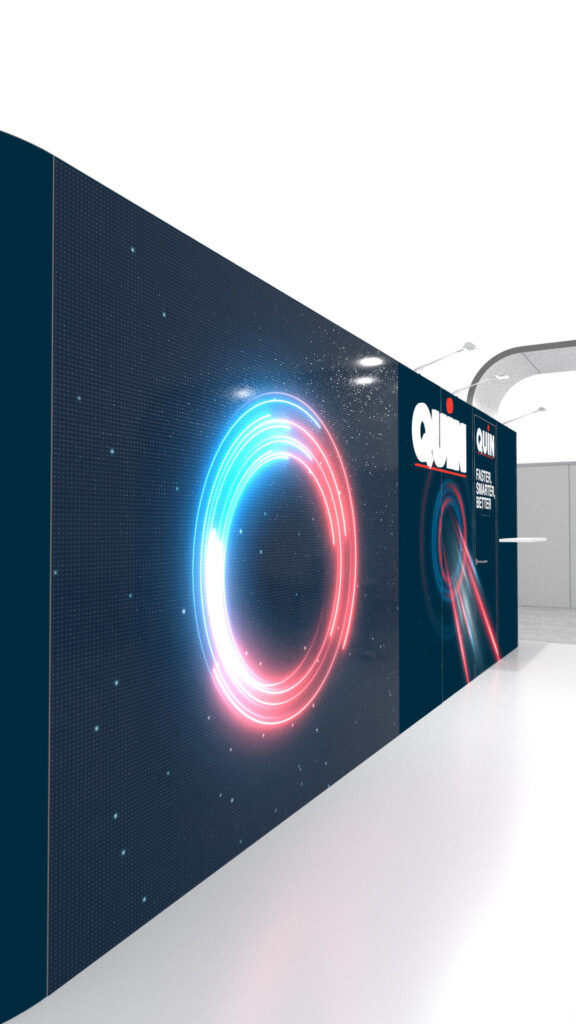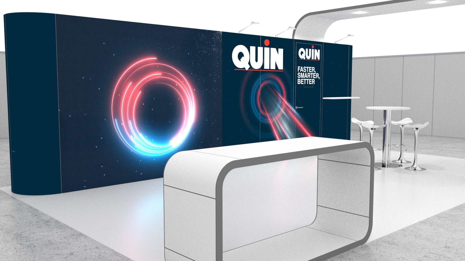 Discover our exhibition stand and graphics proposal for Quin Systems, featuring Aluvision modular system and a captivating video wall.